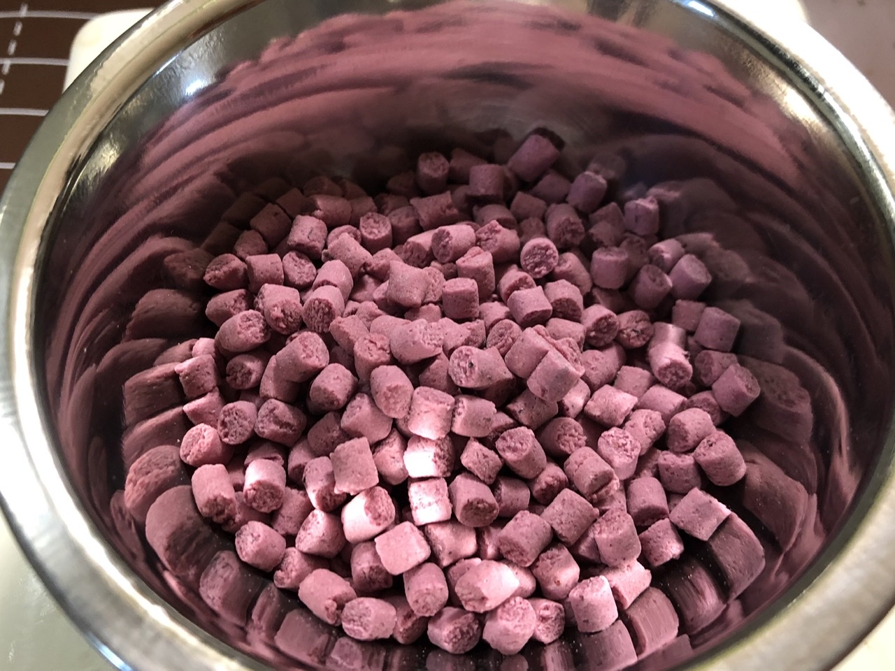 ツマのミルクパン生地に粒ジャムを巻き込んで、ブルーベルージャム入りの食パンを焼きました。