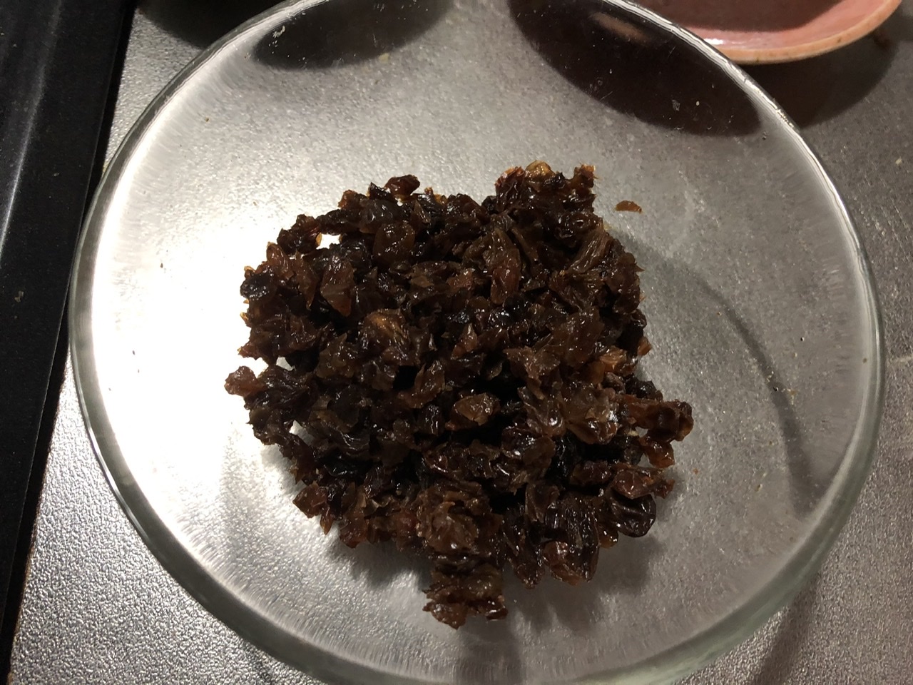 準備:レーズンはお湯で戻して粗く刻んでおく