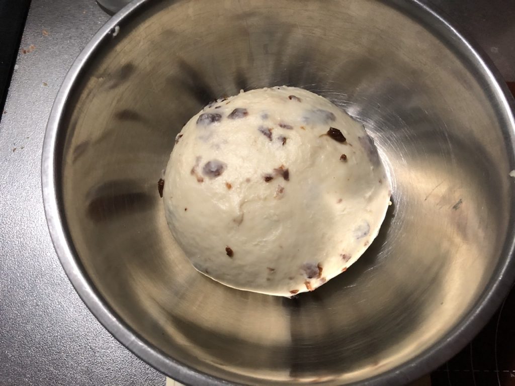 ミキシング:最後にレーズンを混ぜ込む