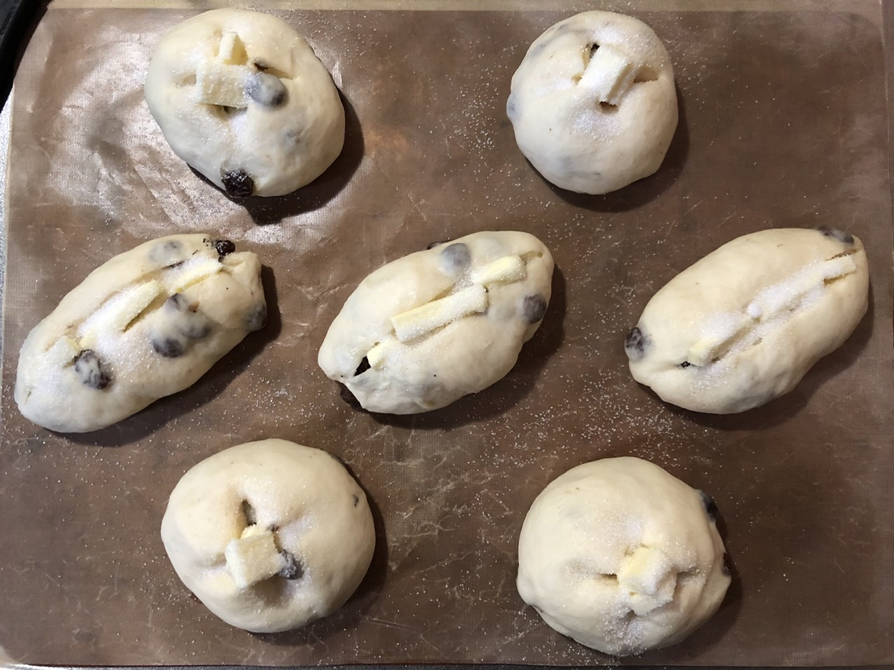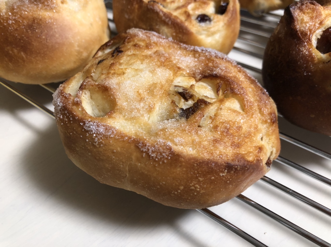 ふわもちの生地、ジューシーなレーズン、焼けたバターの香り、カリッとしたグラニュー糖、本当に美味しいです!サンもフラも大好きで、あっという間に食べてくれます^^